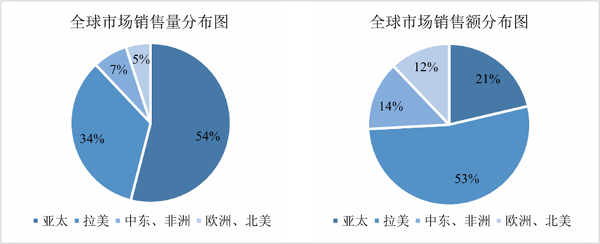 從銷量來看,亞太地區占新大陸數字支付終端銷量的半壁江山,合計約232萬臺;拉美地區緊隨其后,合計約146萬臺;中東非銷量約30萬臺;歐洲北美銷量約22萬臺。